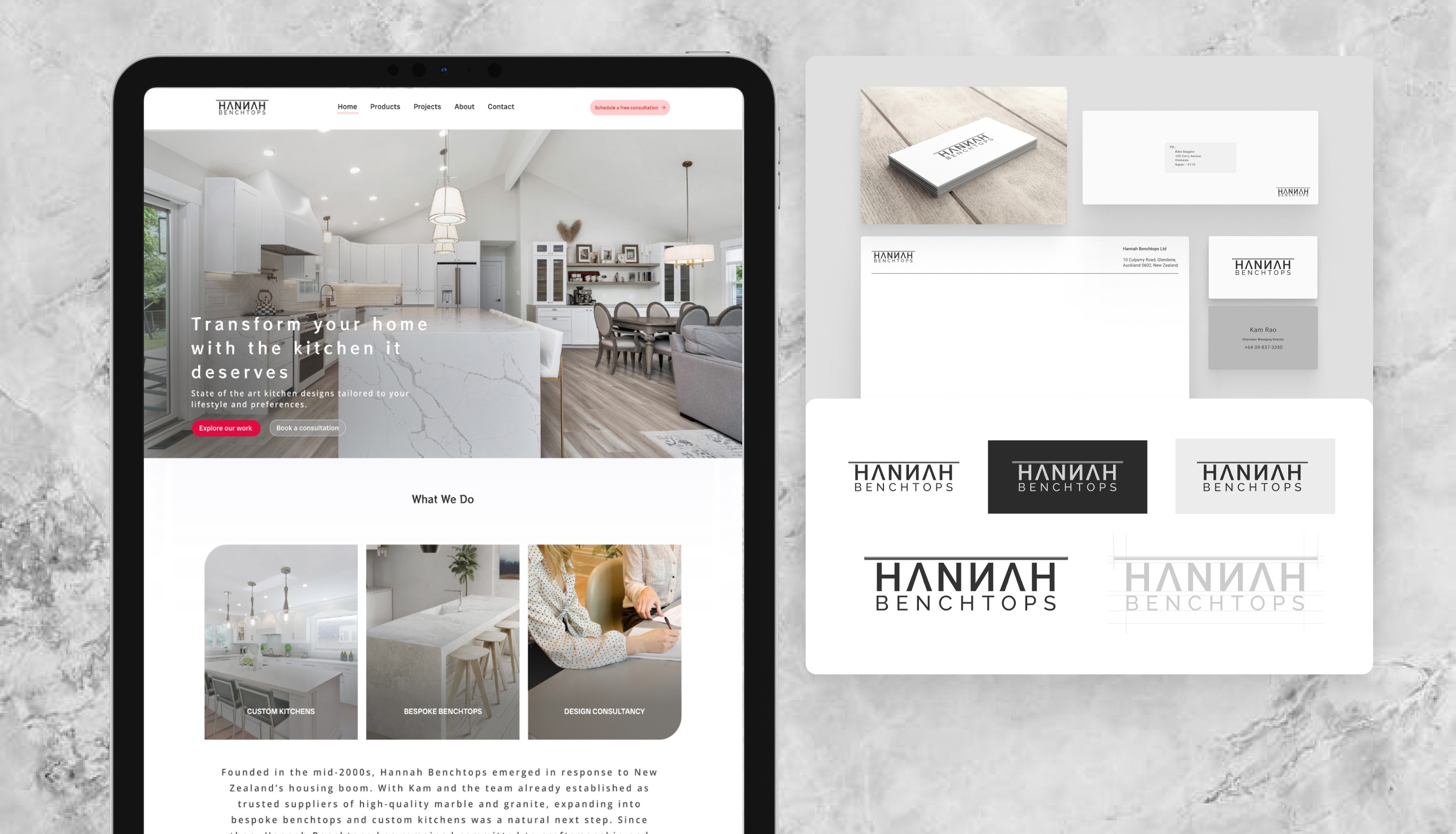 Modern web identity for a luxury kitchen maker in New Zealand.